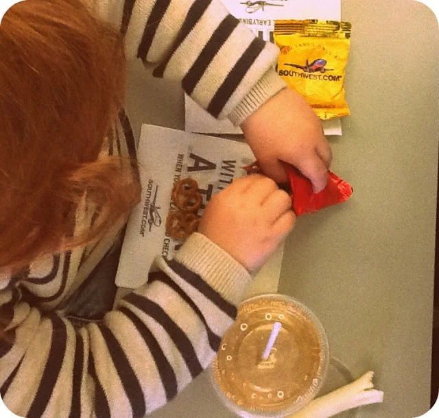 I think I have mastered the art of "flying with child". Or so I'd like to think. Recently, Ryan and I traveled just the two of us and I learned a thing or two about; airports/airplanes combined with a raging toddler who has a knack for screaming, running and hugging random strangers. Last time I flew with Ryan he slept the entire time snuggled against my chest...this time Ryan felt since he was in a "knew" place he needed to explore everything from the terminal shops, gates and people's personal belongings. {I kid you not, while I reached up to stow my diaper bag in the overhead bin, Ryan reached into a lady's purse and pulled out her iphone and said Hi!}
