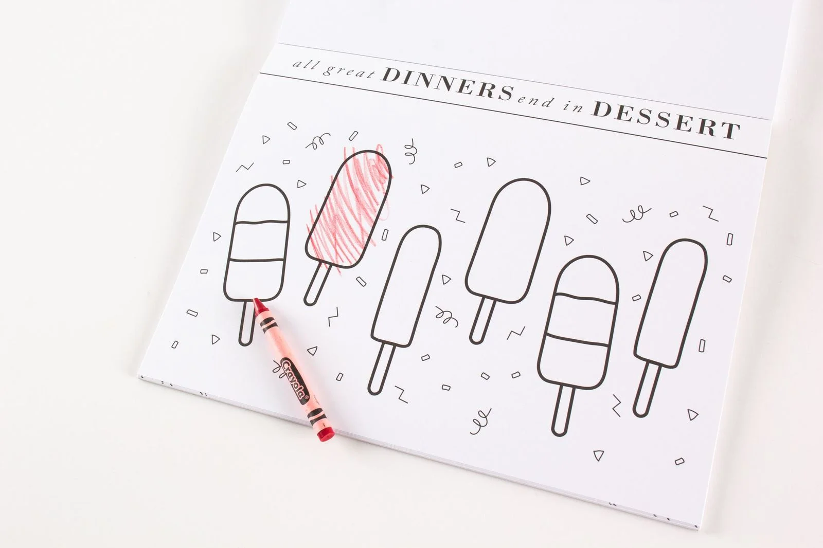 I decided to make this pad out of high quality paper that can be recycled when finished or even saved! I love the idea of having things be reusable, but paper can be recycled and what if your children creates something great on the pages and wants to save it? Or spells their name out for the first time? I know a few masterpieces are must saves and even snag a coveted spot on the refrigerator! My activity placemat pad included 36 placemats that can be take out and placed on the table or even with you for a dinner out! There are ice cream stickers and food stickers that be used any which way your child wants. My personal favorite pages are the mad-lib style ones which the whole family could get involved with. I also included a few tic-tac-toe pages where siblings could play against each other. Of course, we want to make any type of learning fun. So I set out to supply this pad with a great assortment of games that will get your children to use their minds in a fun creative way. You guys .... I AM OBSESSED WITH THESE PLACEMATS!